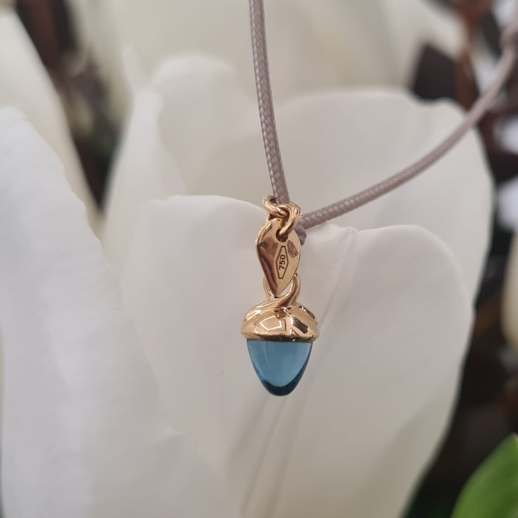Enjoy the shiny colors of the new My Mikado collection. Made of 18 carat white gold set with a blue topaz this piece looks really mesmerizing and you feel summer vibes. Thanks to adjustable length (14 – 20cm) of a nylon string it will always fit and this jewel is a perfect gift.