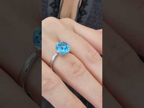 There is a perfect swiss blue topas 10mm set in this stylish ring made of 18 carat white gold. This mesmerizing model is elegant and suitable for all occasions. Thanks to a shaped ring you can wear more Tulip rings on one finger and they will fit perfectly together. Combine it with the other jewels from Tamara Comolli.