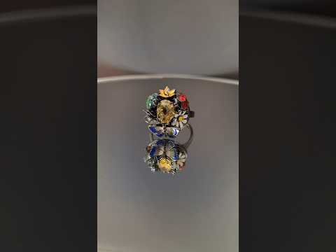 This charming ring with natural design is made of silver. The unusual dark rhodium plated finish looks stylish together with the colors of set zirkons and enamel. This little piece of art is the ideal companions for all jewellry lovers. Wear it as the only jewel or combine it with the other pieces of the Night collection.