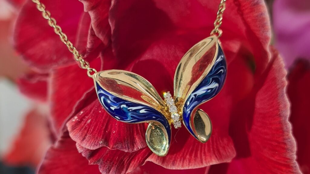 Enjoy the first warm days with a new piece of jewelry from the Chicky collection, shining with the colors of enamel and the shine of diamonds. Jewelry made of 14-carat gold with a unique design by Roberto Bravo will enchant any lady with its imagination. The jewelry makes a strong impression and you will be unforgettable with it on every occasion.