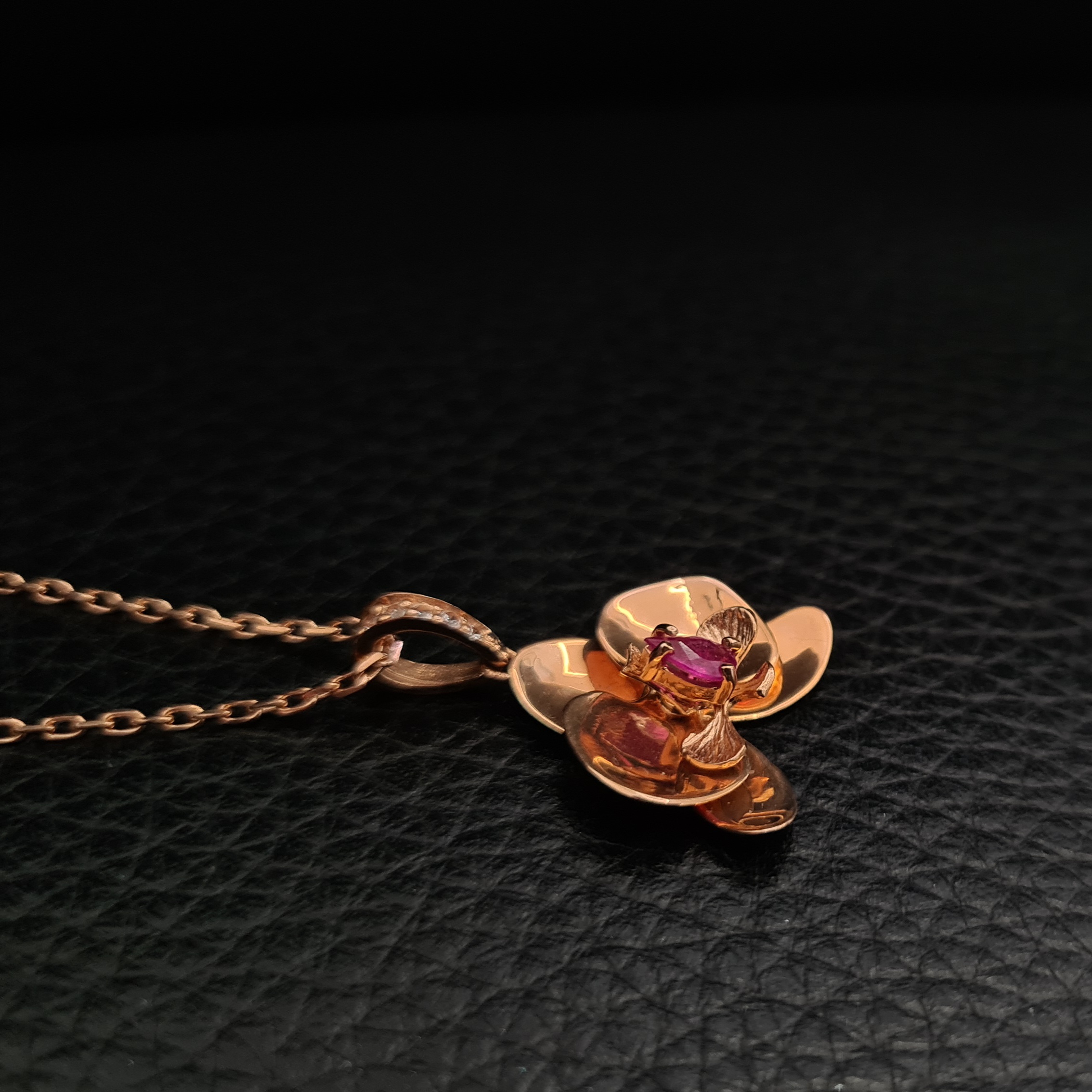 Náhrdelník je z ružového 14-karátového zlata v lesklej úprave. Zdobí ho odnímateľný prívesok s orchideou. Osadený je ružový zafír a záves zdobí línia zafírov. Jeho celková dĺžka je 48cm, nosiť ho môžete v rozpätí 43 – 48cm. Noste ho s ďalšími šperkami z kolekcie Black Orchid.