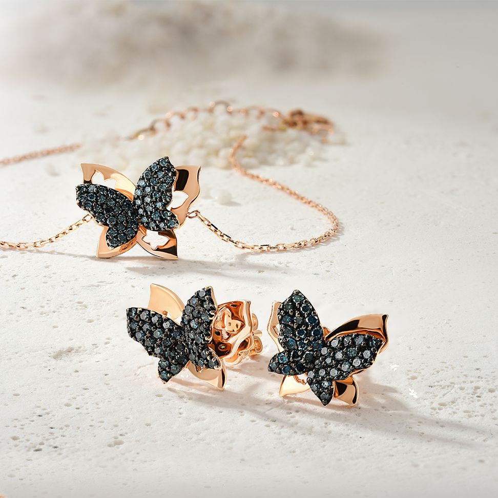Elegantný náhrdelník z ružového 18-karátového zlata bude skvelým darčekom. Jeho celková dĺžka je 42cm. Motív motýľa zdobia modré diamanty. Dokonalé pavé osadené v čiernej úprave vás rozžiari vo všedný deň aj pri výnimočných príležitostiach. Noste ho s ďalšími šperkami z kolekcie Naviblue.