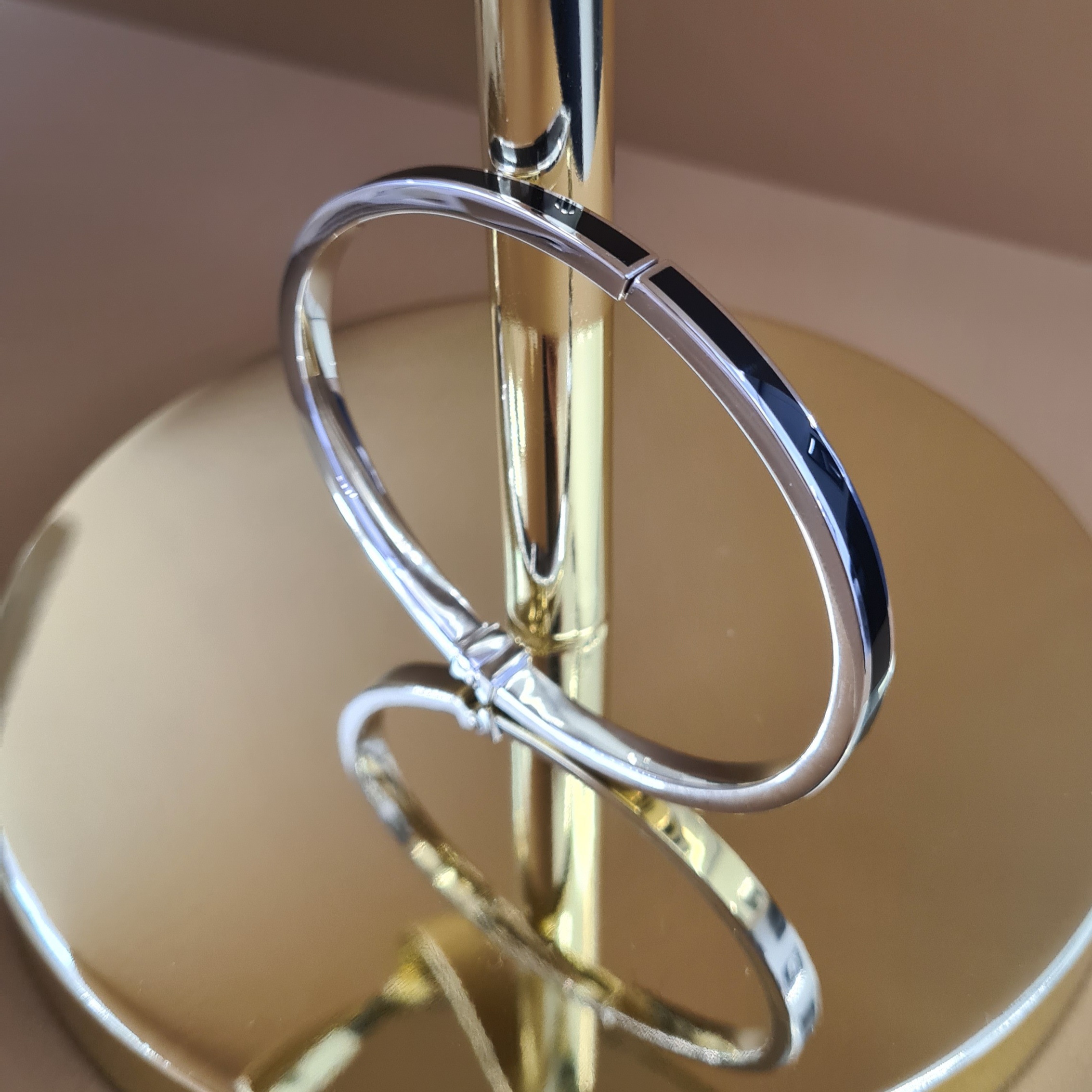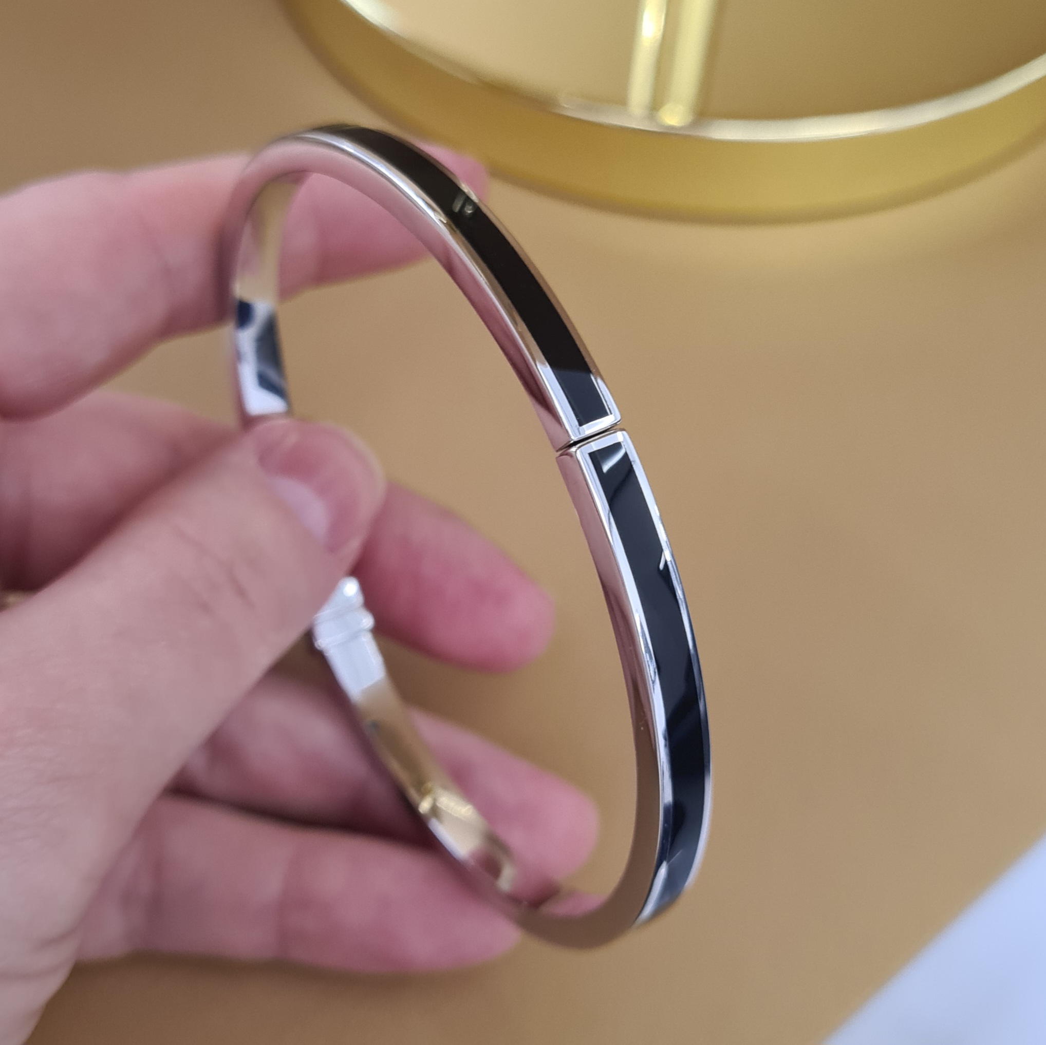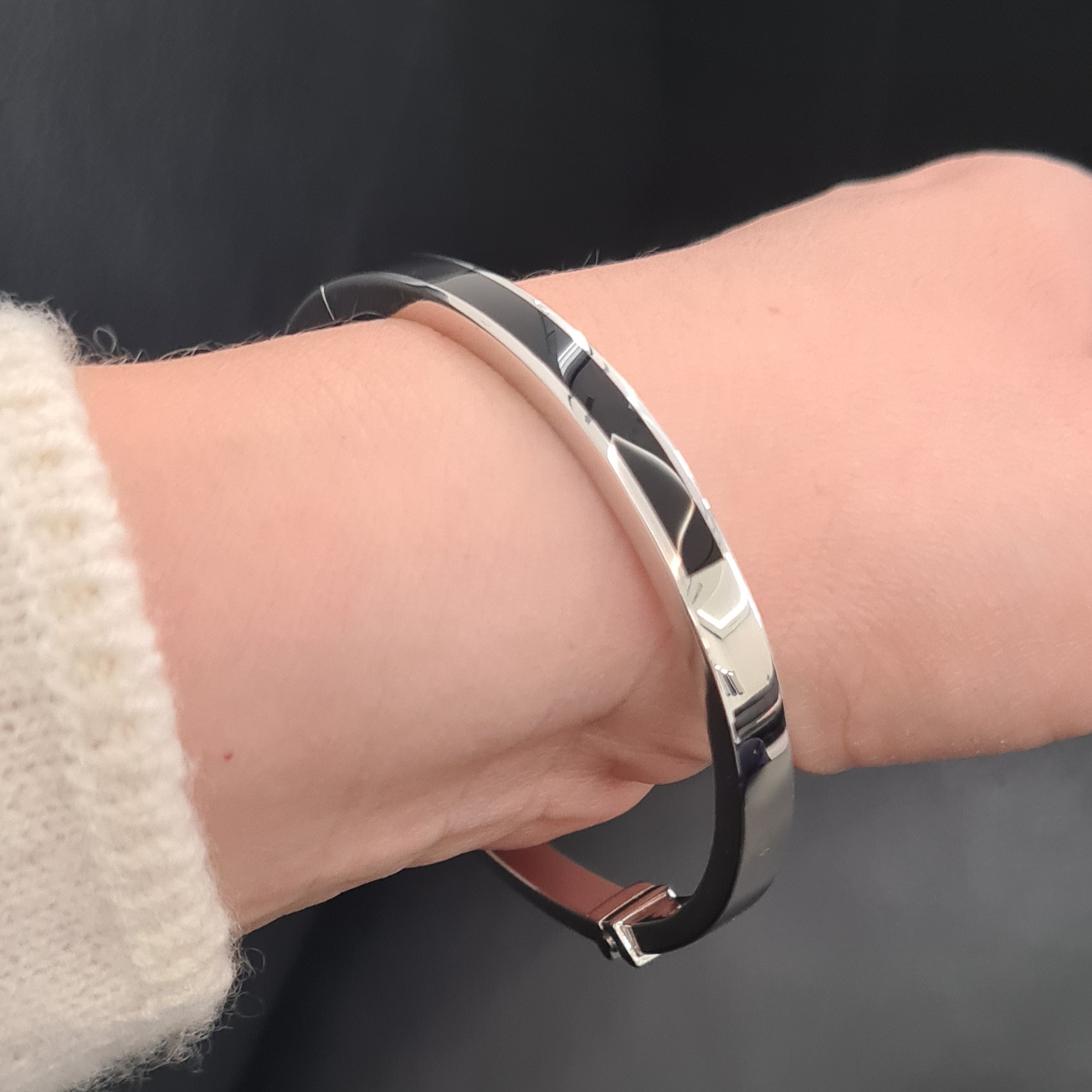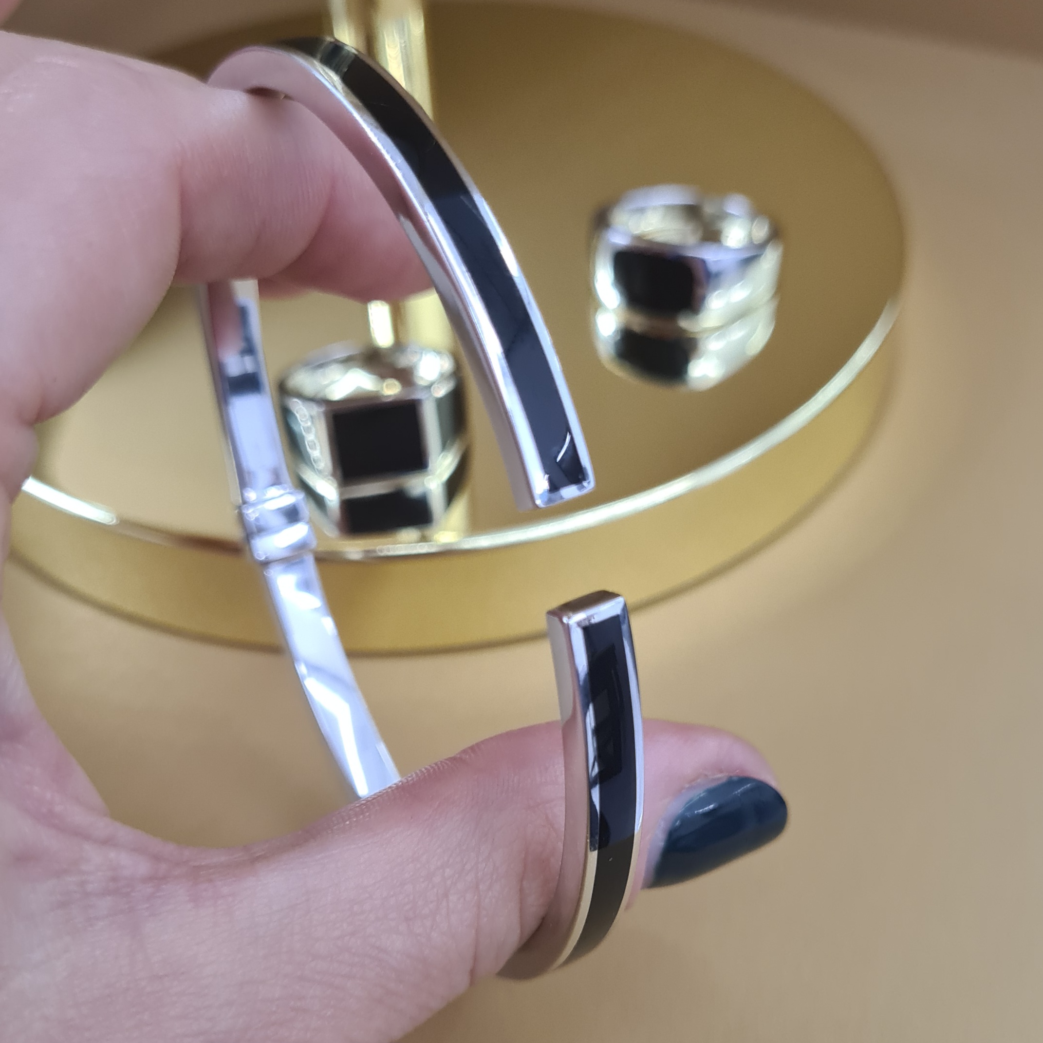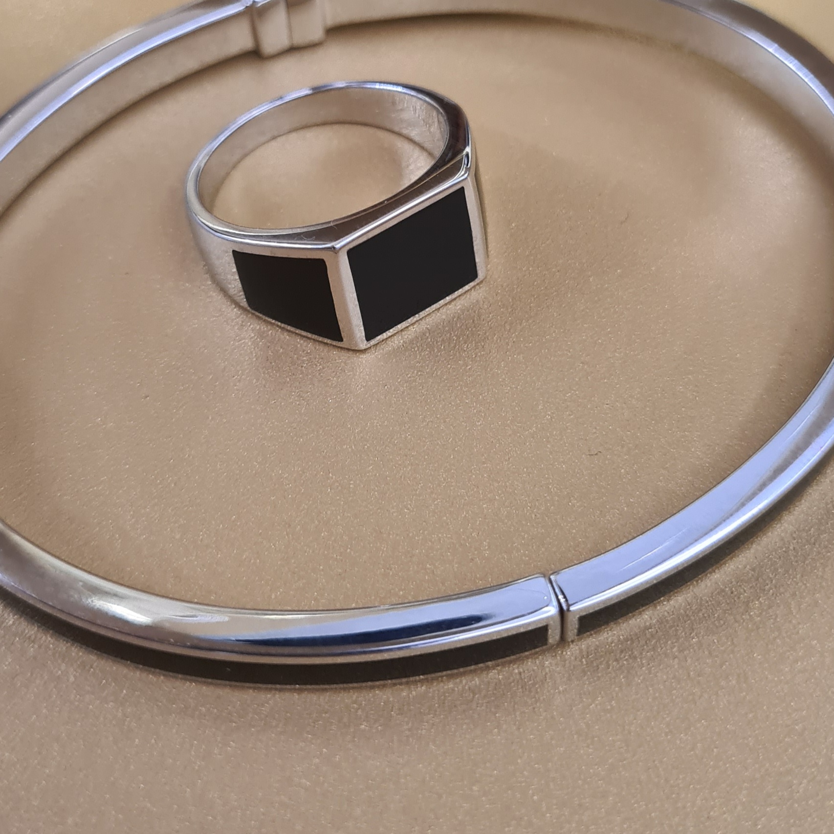 Masívny náramok vyrobený zo striebra z kolekcie Bravoman má rhodiovanú lesklú úpravu a zdobí ho elegantný čierny achát. Kombinujte ho s prsteňom z kolekcie.