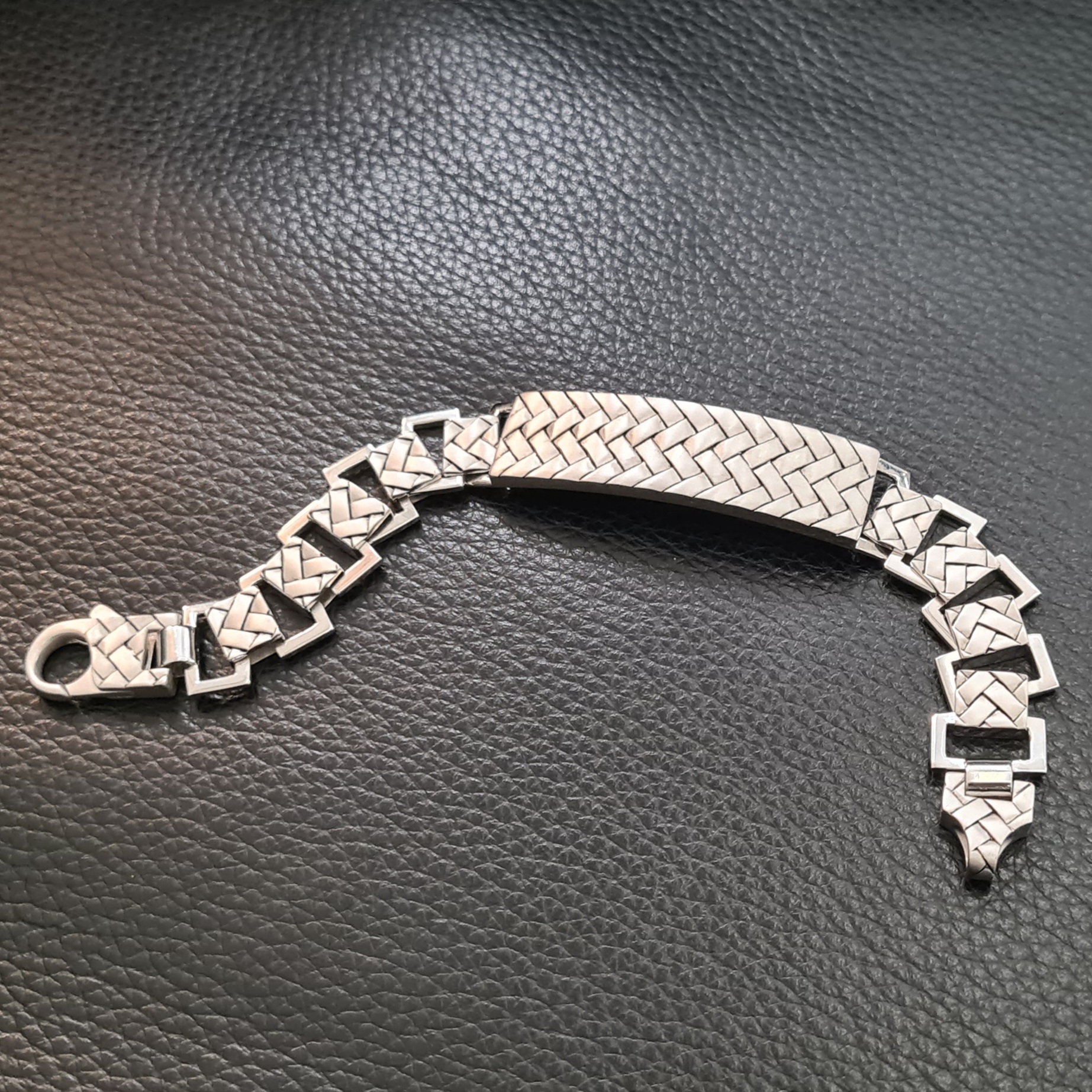 Masívny náramok vyrobený zo striebra z kolekcie Bravoman má rhodiovanú matnú aj lesklú úpravu a zdobí ho dokonalá štruktúra. Kombinujte ho s prsteňom z kolekcie.
