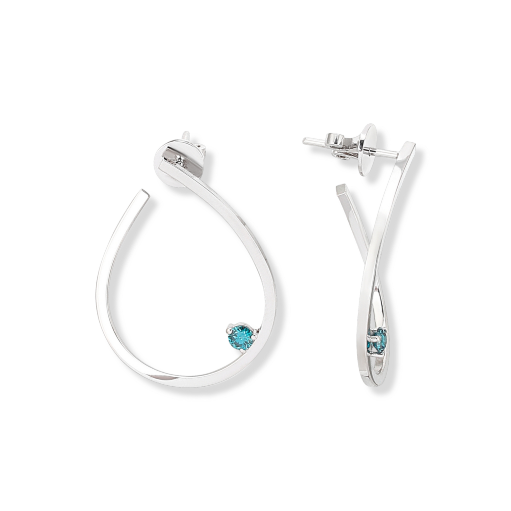 Trendy otvorený dizajn napichovacích náušníc z kolekcie Naviblue je z bieleho 18-karátového zlata s rhodiovanou úpravou. Zdobí ich jemný detail v podobe modrých diamantov. Noste ich s ďalšími šperkami z kolekcie Naviblue z bieleho alebo ružového zlata.