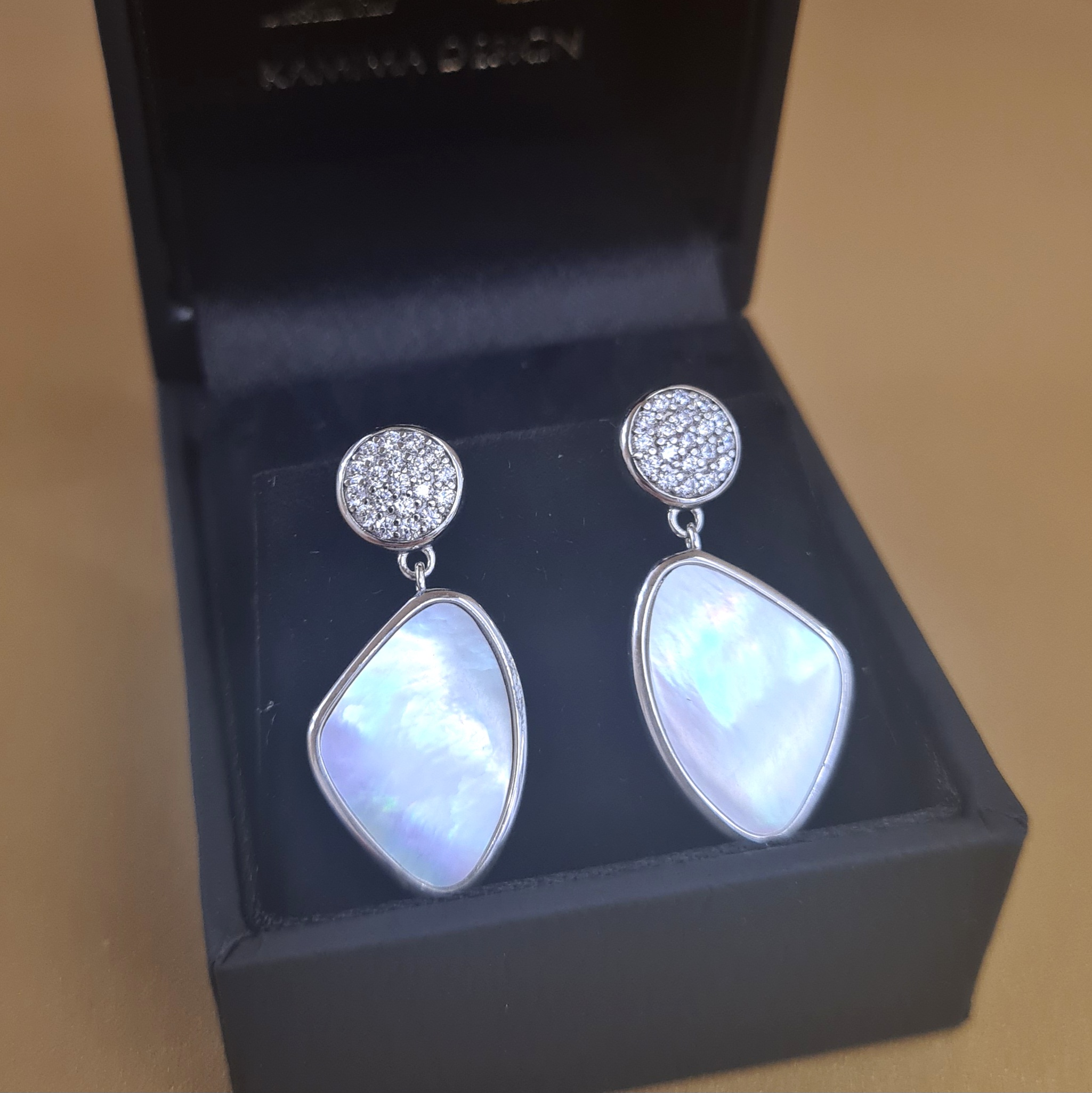 Elegantné napichovacie náušnice z novej kolekcie Lucky Gems sú vyrobené zo striebra. Náušnice s rhodiovanou úpravou sú osadené trblietavými zirkónmi a perleťou bielej farby. Noste ich na všetky príležitosti a kombinujte s ďalšími šperkami z kolekcie