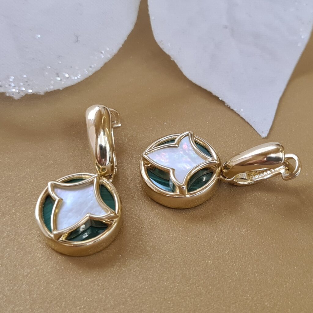 Náušnice zo zlata s malachitom a perleťou Marrakech