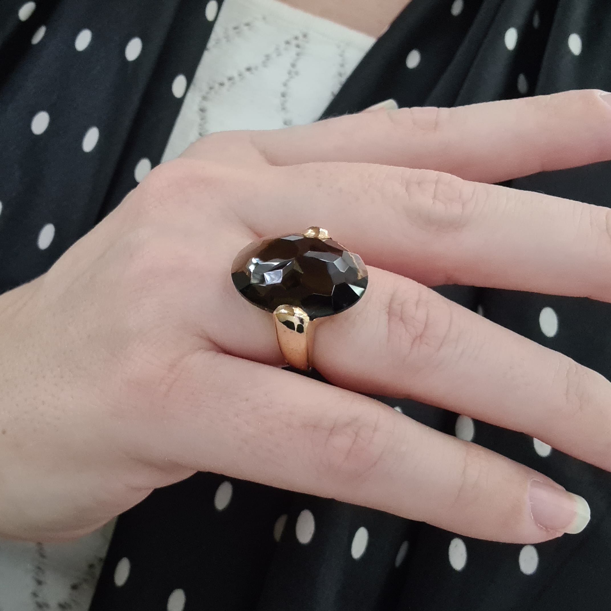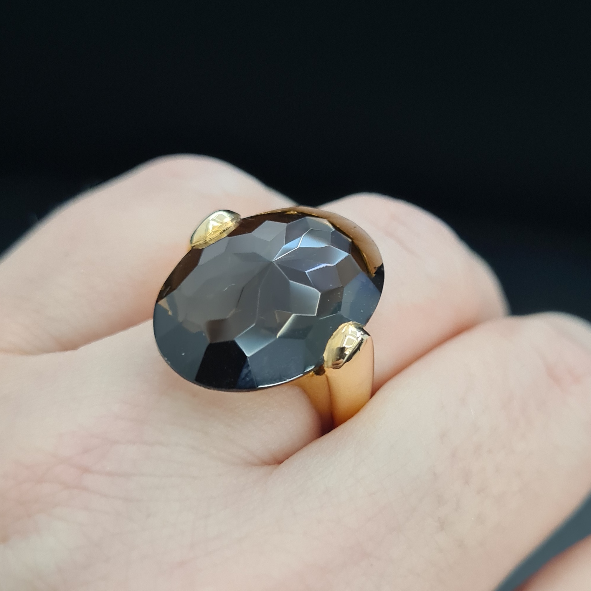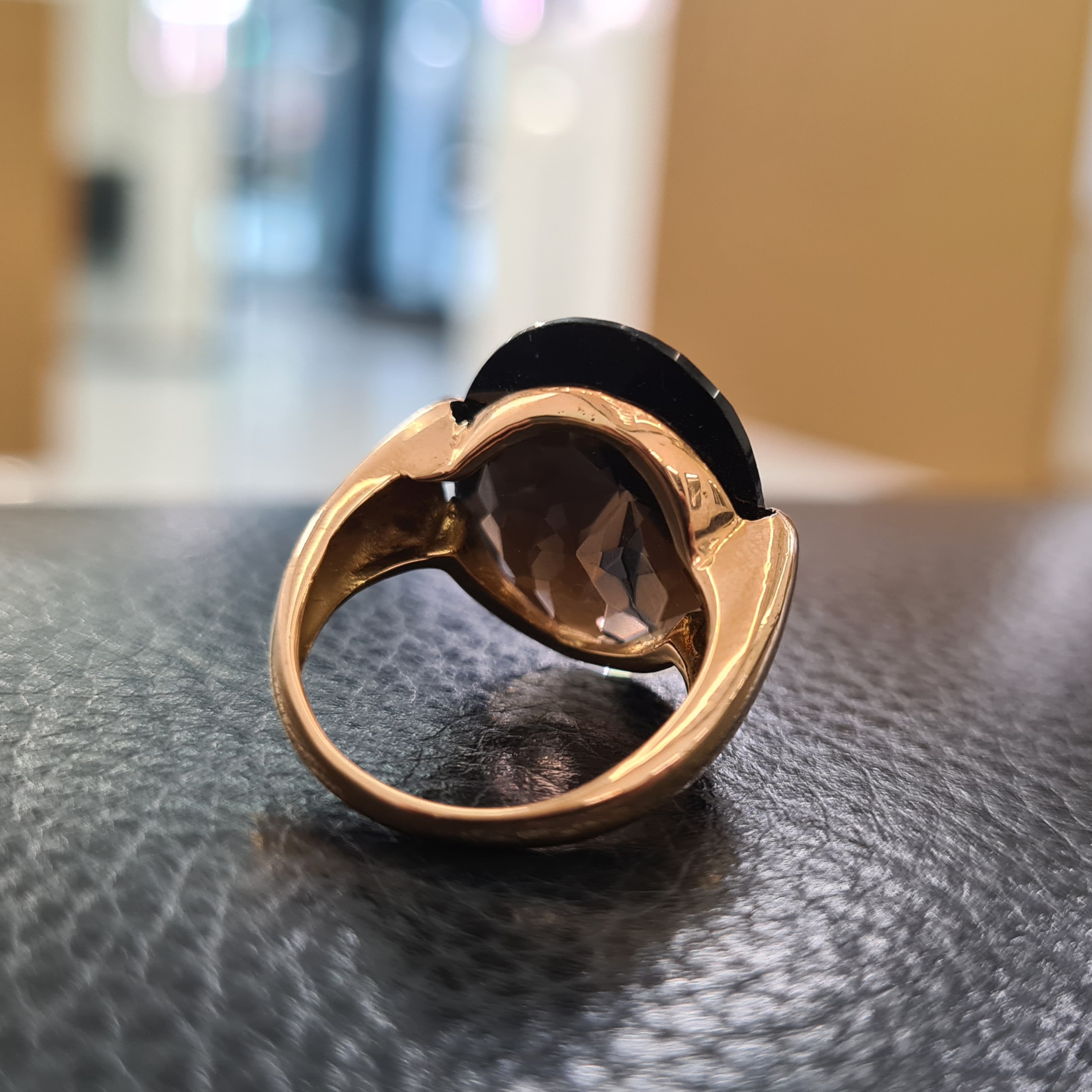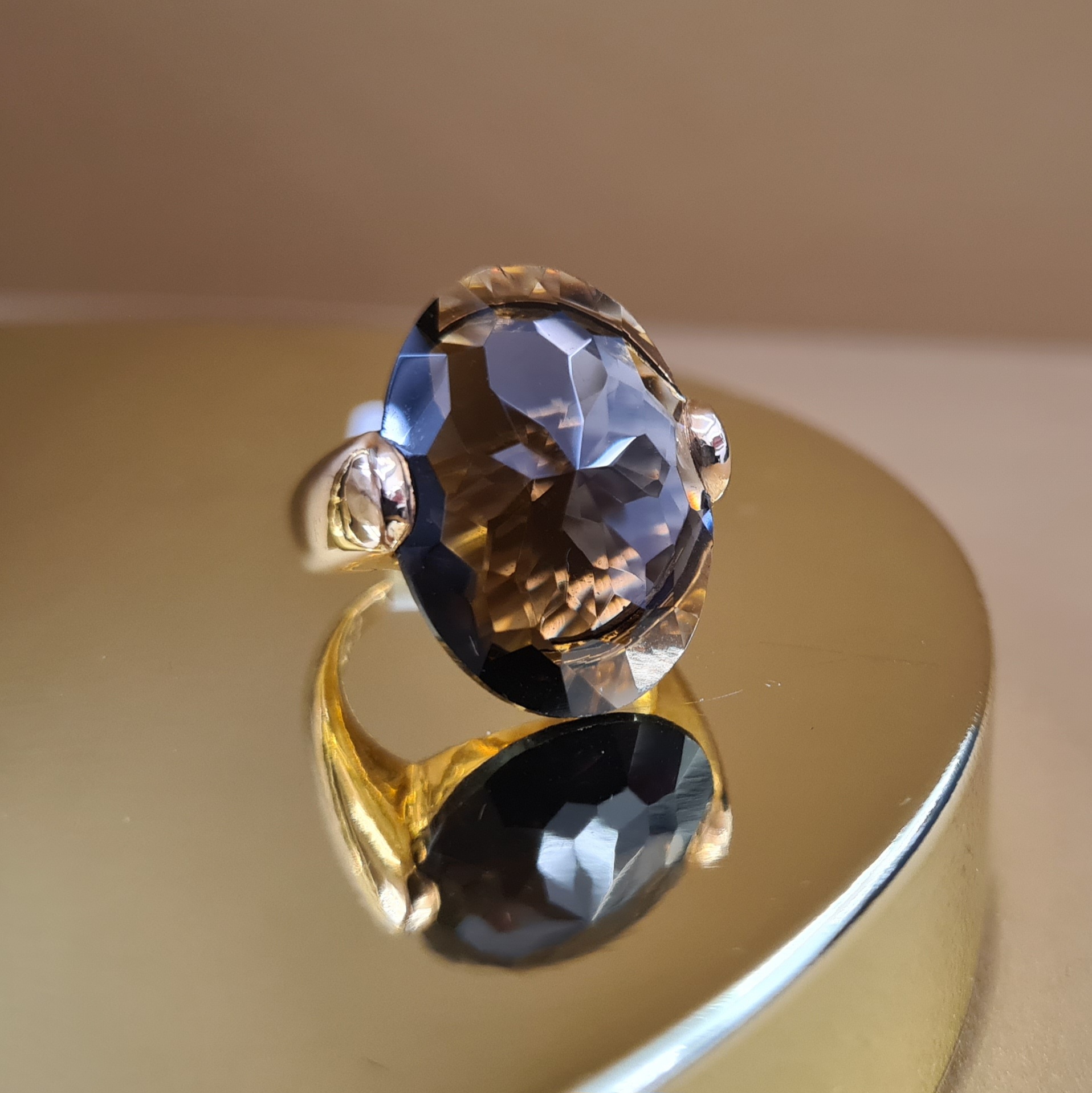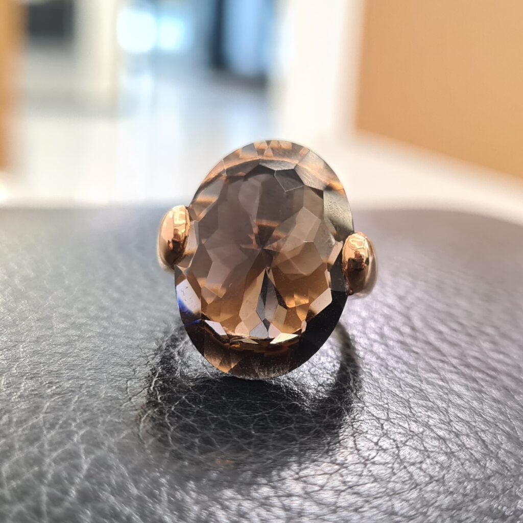 Jedinečný koktailový prsteň z ružového 18-karátového zlata zdobí krásna oválna záhneda dymovej farby. Tento prsteň sa stane vaším obľúbeným doplnkom pracovného outfitu aj spoločníkom na výnimočné príležitosti. Dizajn z talianskej dielne Stanoppi je tým pravým darčekom pre dámy, ktoré obľubujú jedinečné šperky. Dostupný je jediný kus vo veľkosti 52.